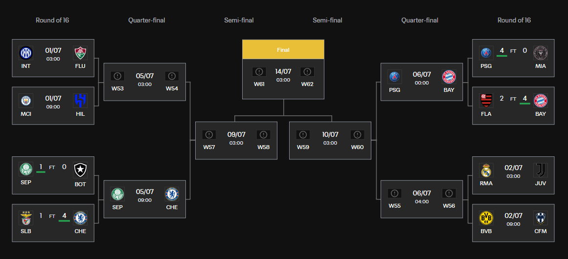 帕尔梅拉斯将对阵切尔西,胜者将对阵的球队可能为国米、弗鲁米嫩塞、曼城或利雅得新月。